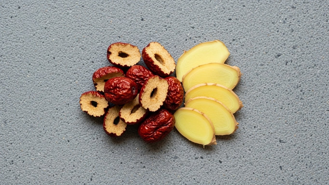 대추의 수렴(收斂)과 방어: 이때 대추가 등장합니다. 대추의 진득한 단맛과 진액은 생강의 매운맛을 부드럽게 감싸 안고, 생강이 기운을 너무 밖으로 빼지 않도록 적절히 잡아주는 역할을 합니다. 무엇보다 자극받은 위벽을 보호하여 속을 편안하게 해줍니다.